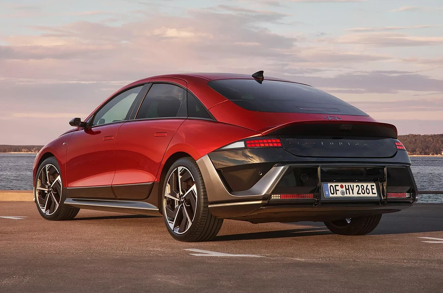Introducing the first IONIQ 6 N Line. Based on the muscular design DNA of our RN22e Rolling Lab, the N Line variant adds a distinctly bold touch to this electric streamliner.