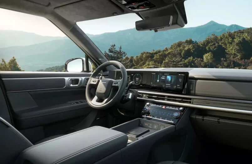 SANTA FE is your connected sanctuary on the road, featuring an elegantly curved panoramic display with two integrated screens a 12.3” infotainment touch screen and 12.3” digital cluster.